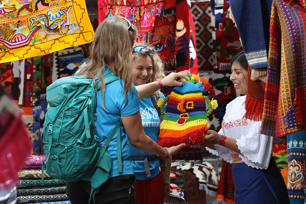 Recorrer la icónica Plaza de los Ponchos de Otavalo
