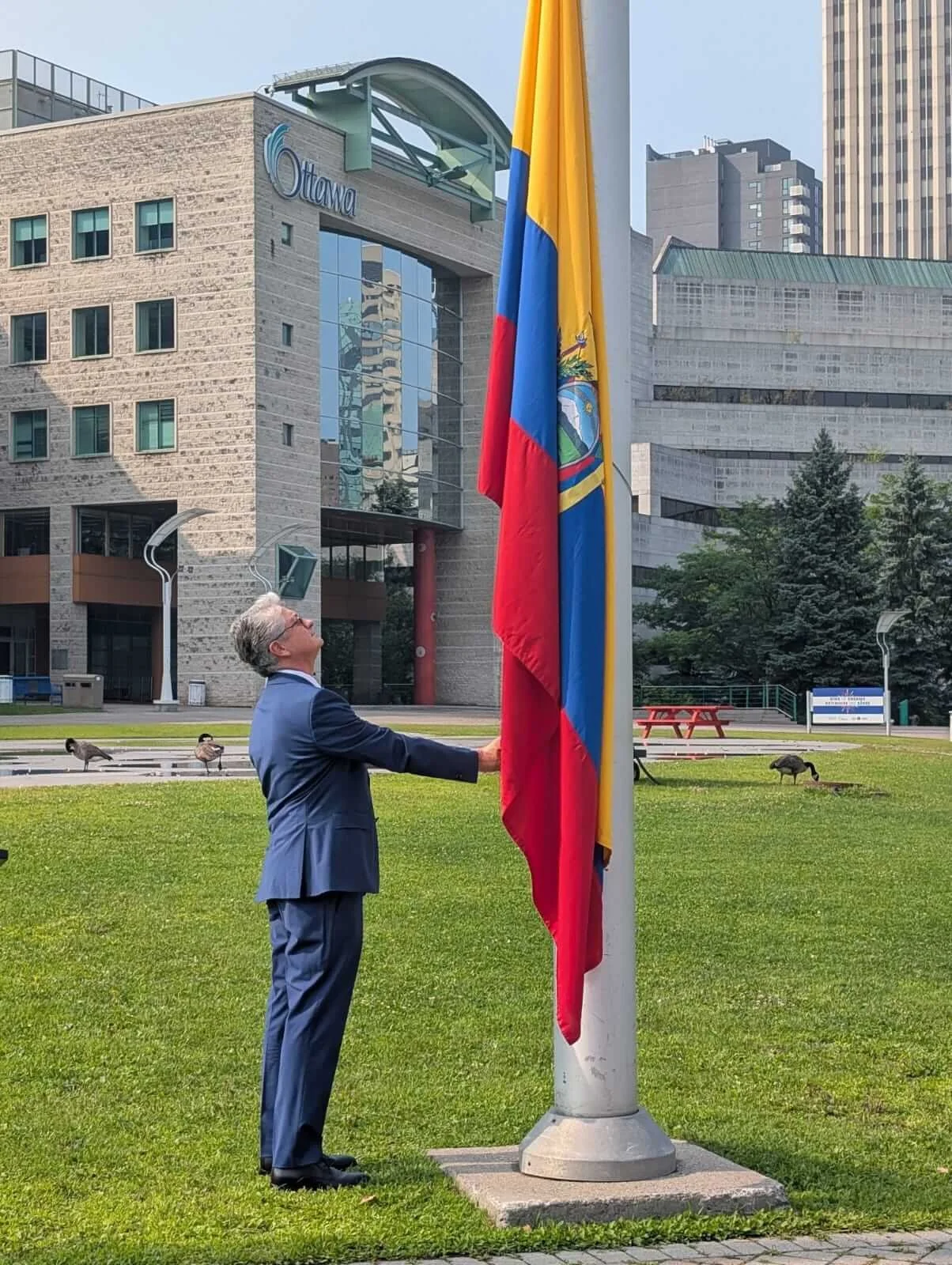 On August 8, in Ottawa, Canada, the Ecuadorian flag was raised in the Ottawa City Hall plaza in honor of independence. Ambassador Esteban Crespo Polo delivered a message inviting reflection and commitment to the ongoing struggle. The event was attended by the ambassadors of Peru, Colombia, Cuba, Chile, and Guatemala, as well as representatives from the embassies of Argentina, the Dominican Republic, Costa Rica, El Salvador, Panama, and the Netherlands, and leaders of the Ecuadorian community in Ottawa and Gatineau.